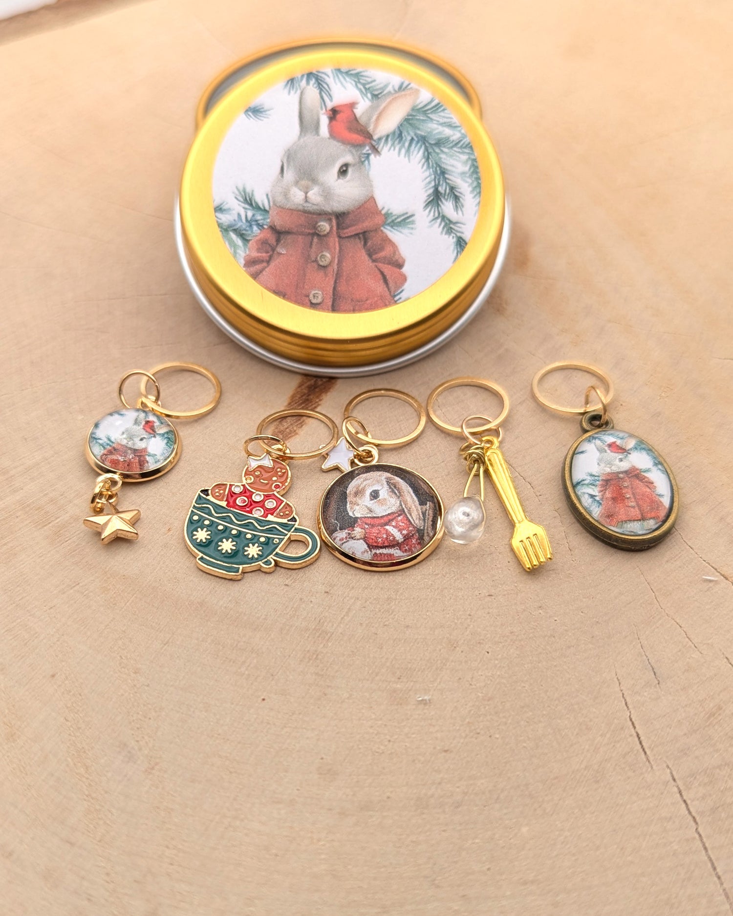 🧶 Ensemble de 5 marqueurs tricot – Hiver Poudré