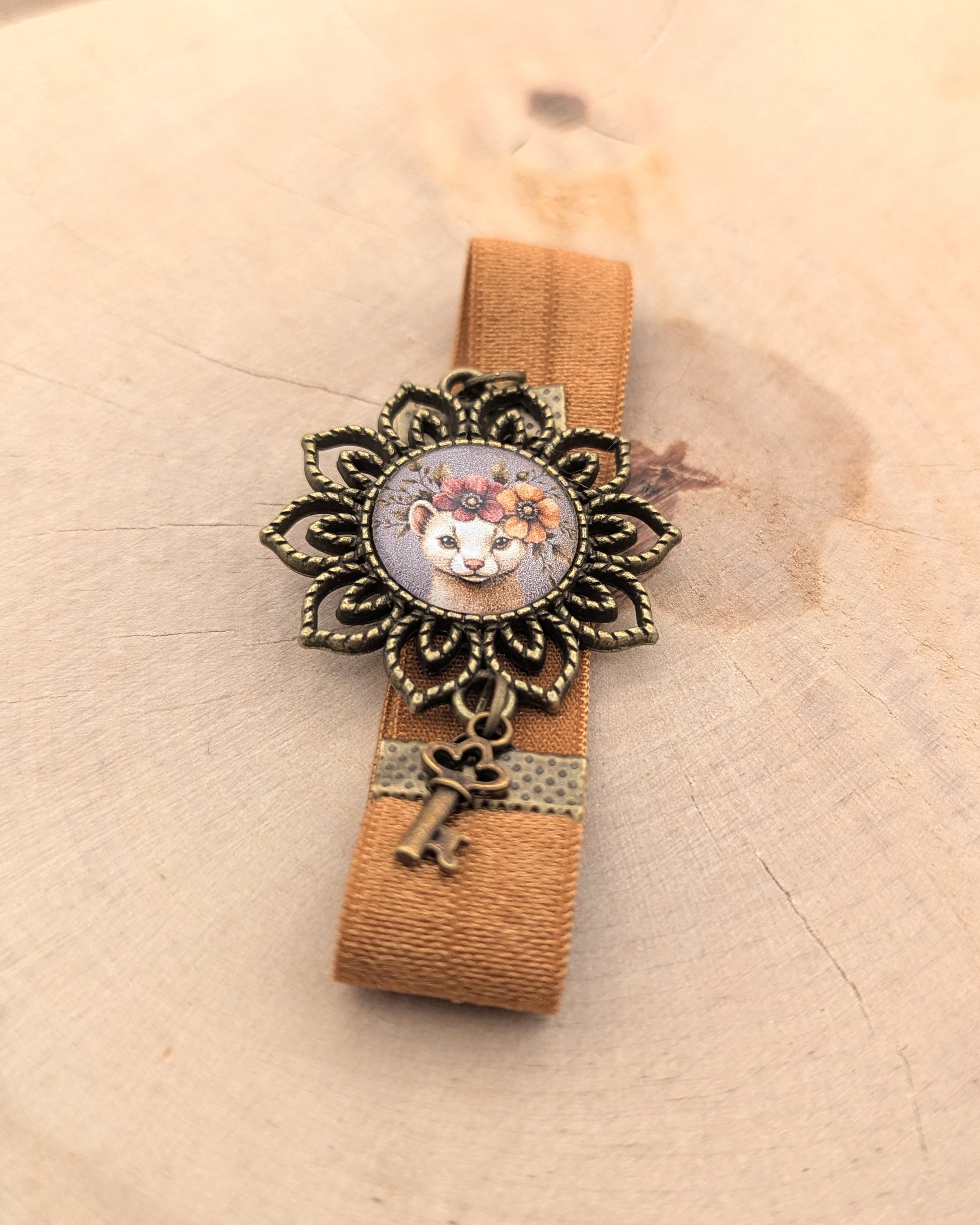 Vous positionnez le cabochon sur la couverture et vous glissez le ruban dans le livre, à la bonne page 📖