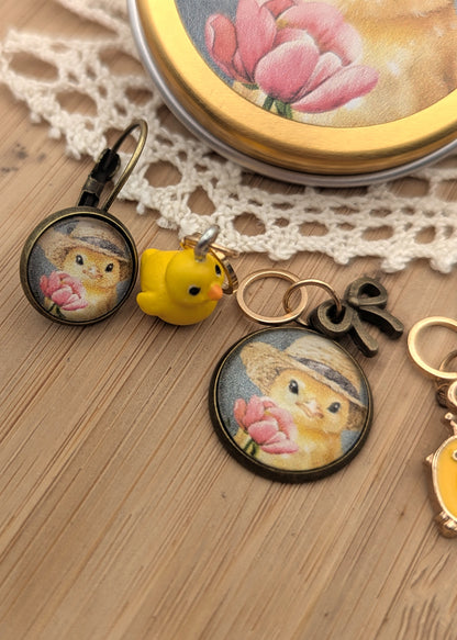 - 1 marqueur tricot poussin émail et coeur en cristal