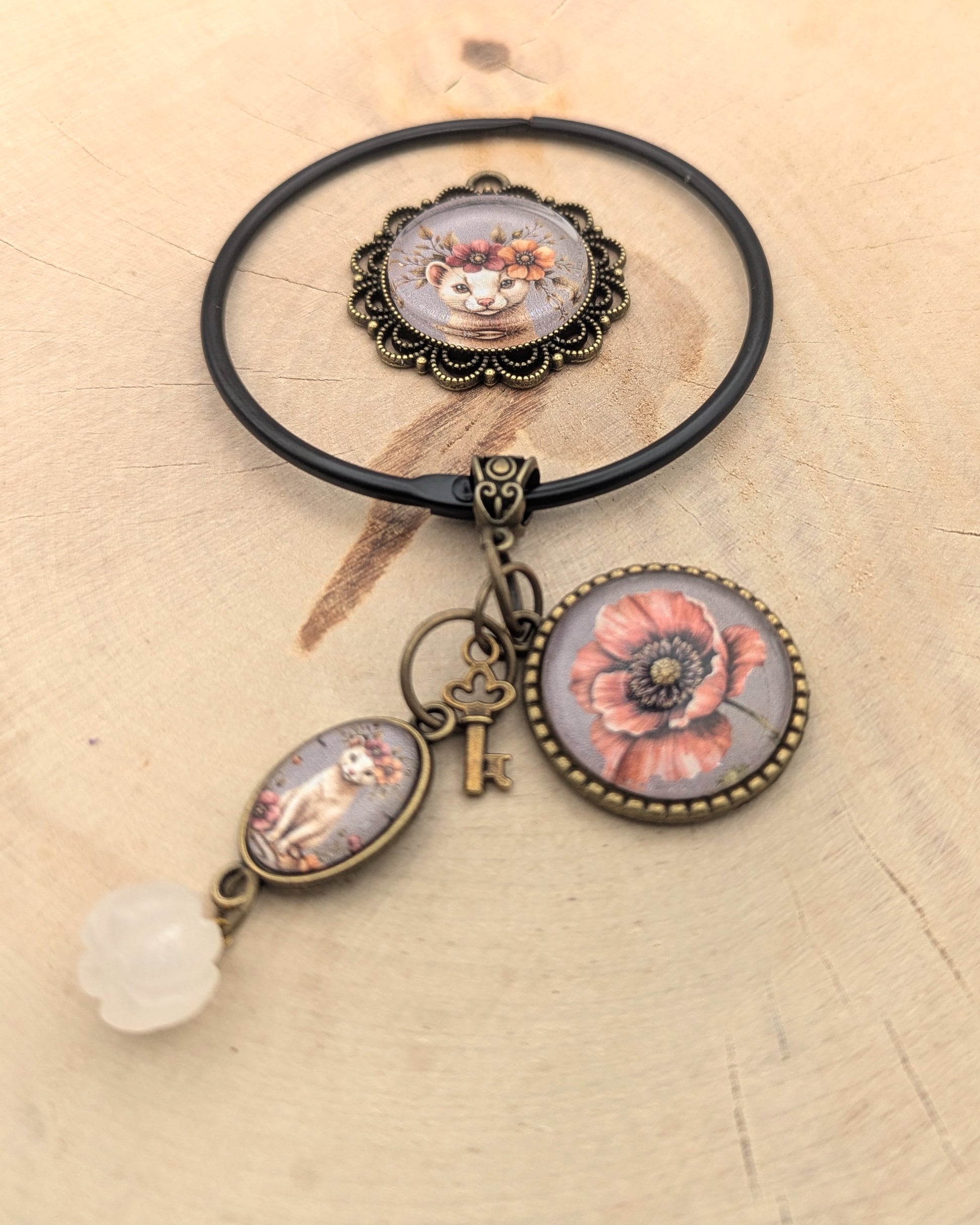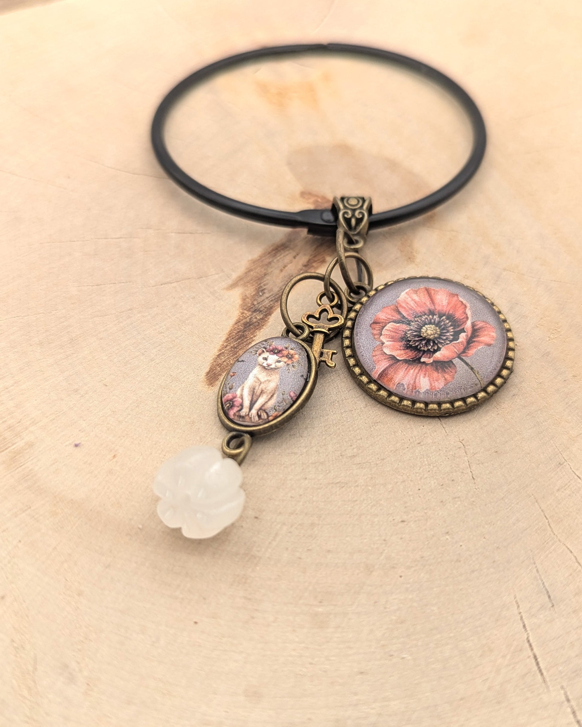 - Cabochon en verre, décor inspiré de Anémone Oubliée (nuances prunes, rose orangé, bronze) . la seconde image présente l'article avec l'aimant assorti. celui-ci est vendu à part.